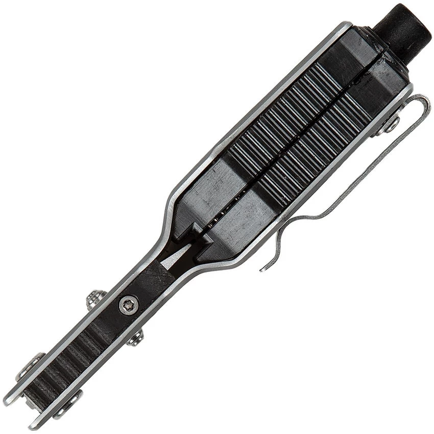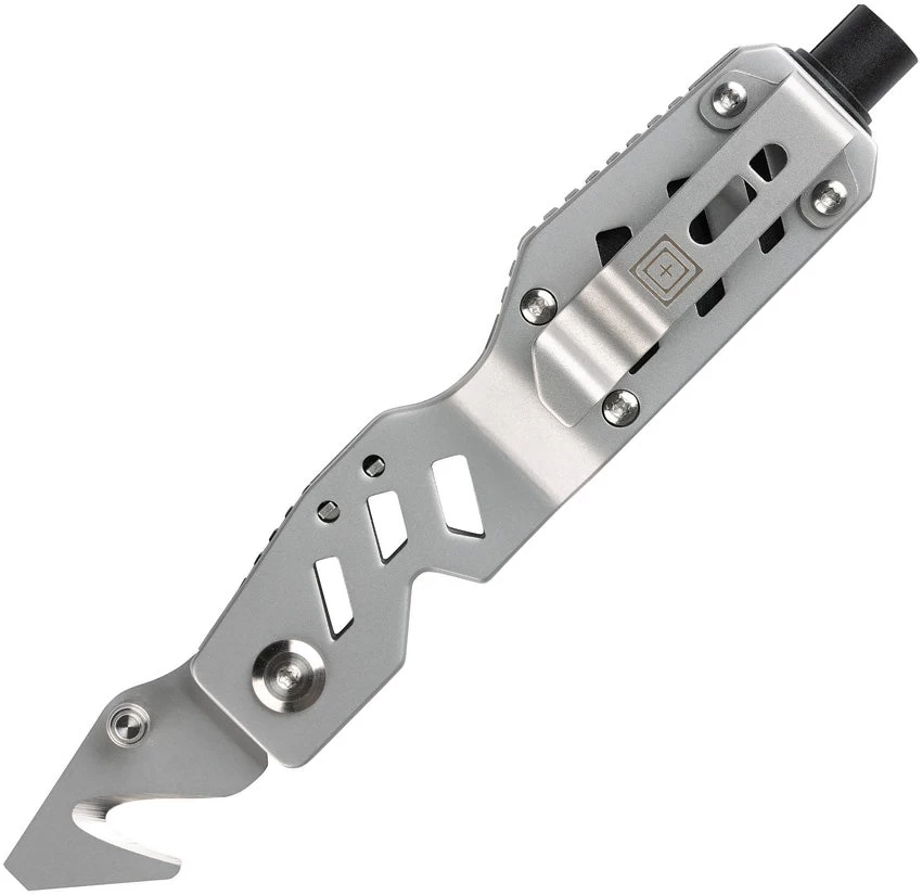 4.25″ closed. Stainless handles. Tools include: Glass breaker l Belt/cord cutter l Pry bar l Pocket clip. Clam packed.