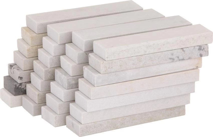 Measures 4″ x 1″ x 3/8″. Soft Arkansas novaculite sharpening stone. The most versatile for general purpose sharpening. Includes 28 stones. Measurements are approximate. Stones may vary in size and color.