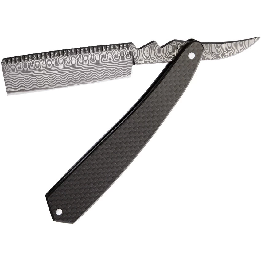 Bastion Damascus Straight Razor Carbon Fiber Folding Knife TN221