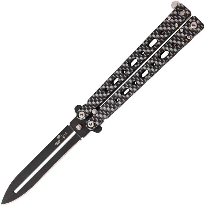 Bear & Son Bear Song IV Carbon Fiber Coated Aluminum Handles 1095 Carbon Steel Black Balisong CB500AICFB