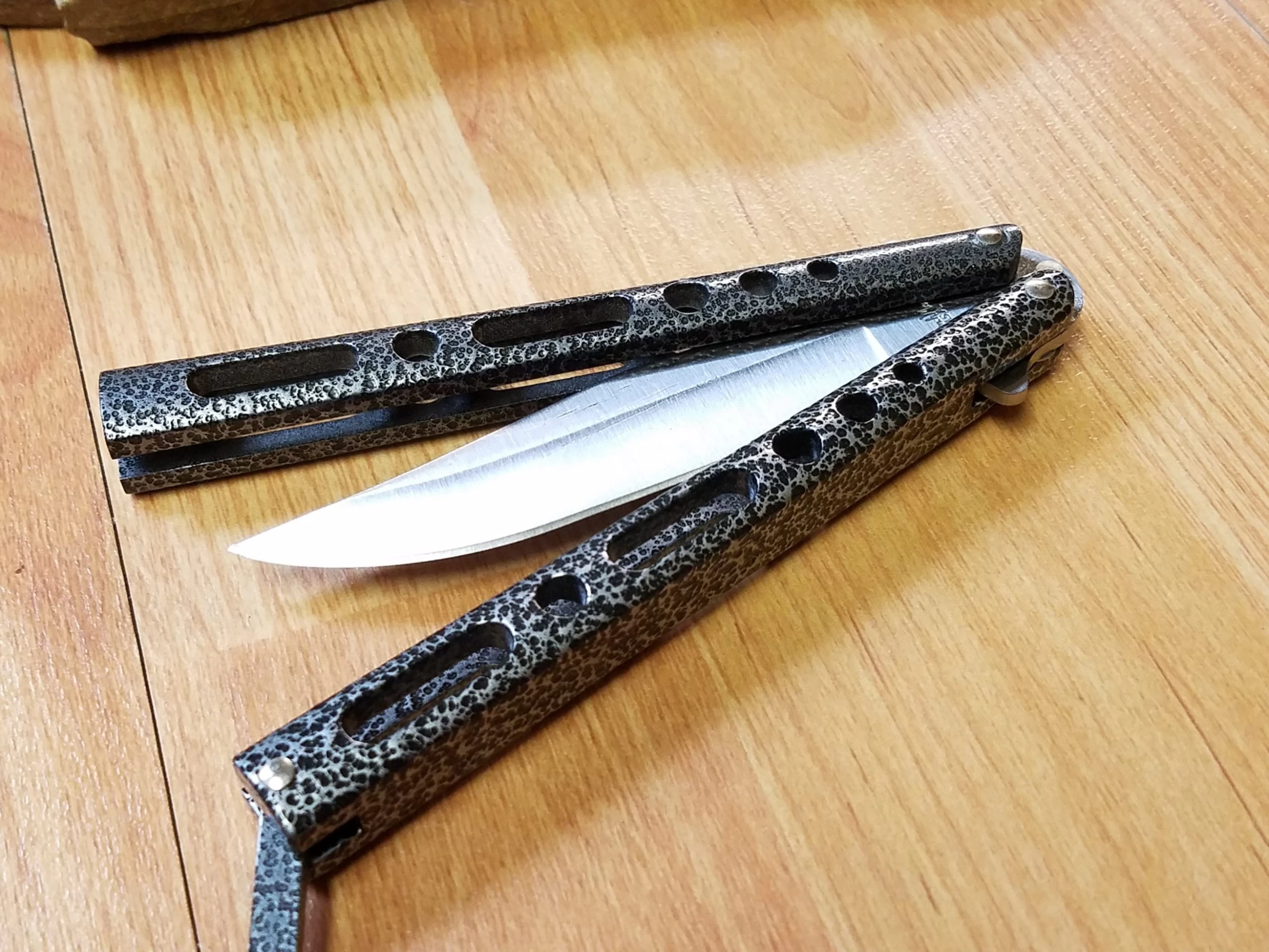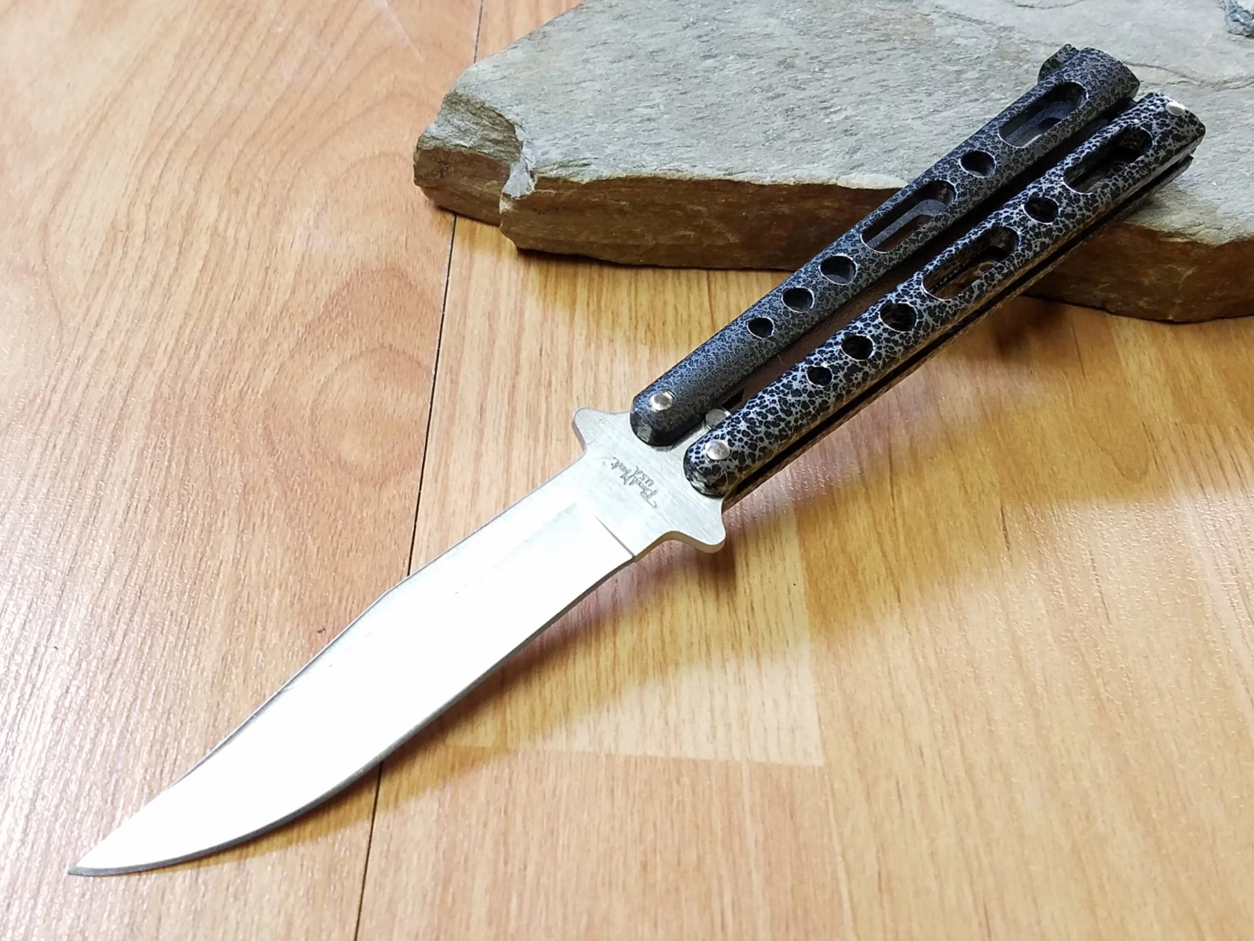 Benchmark Balisong 9″ Black Silver Stainless Folding Knife 005