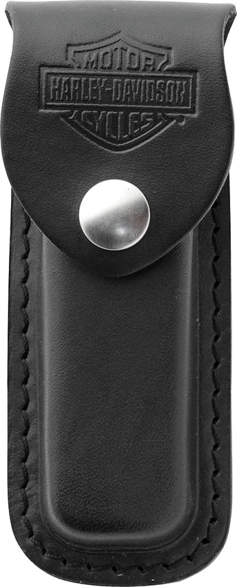 Black leather with Harley Davidson logo. Snap closure. Fits 4 1/2″ folding knife. Bulk packed.