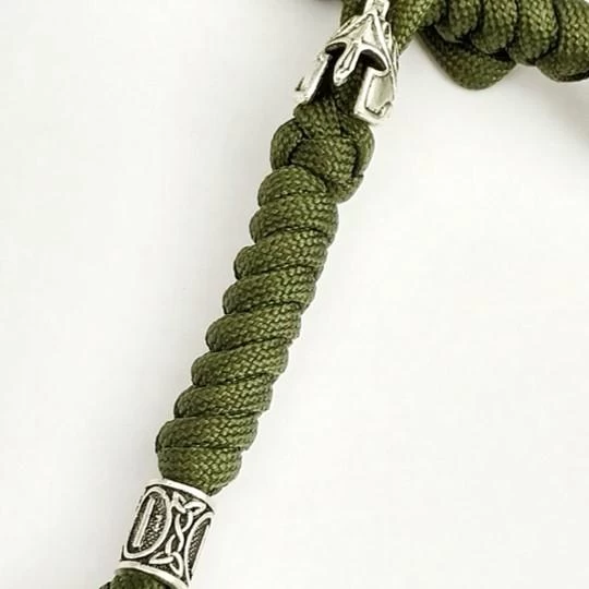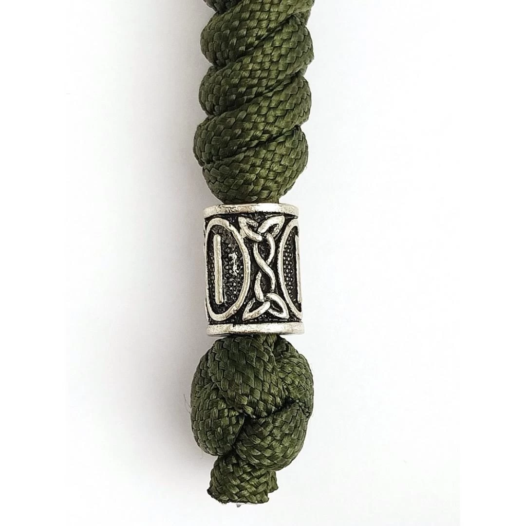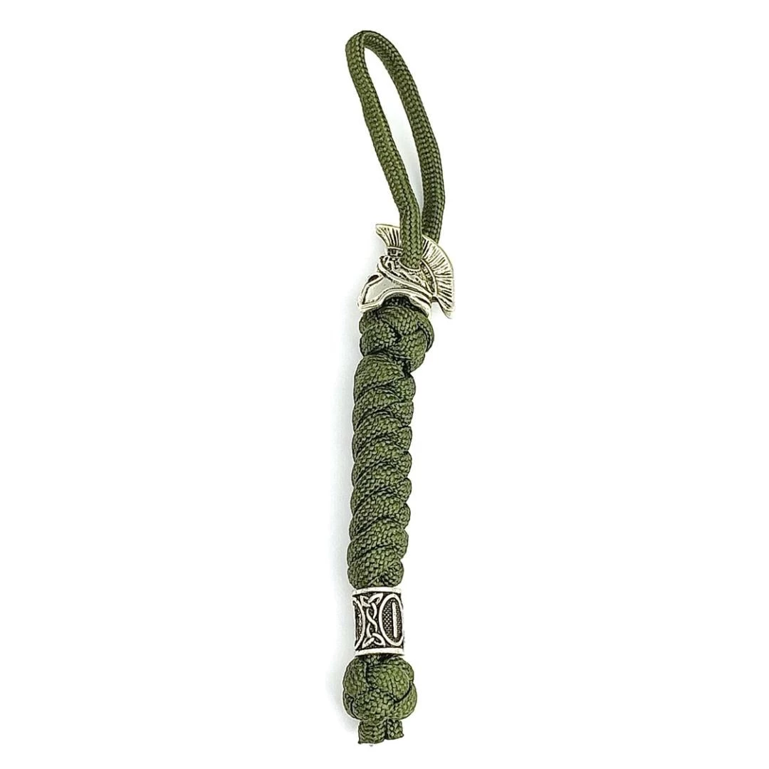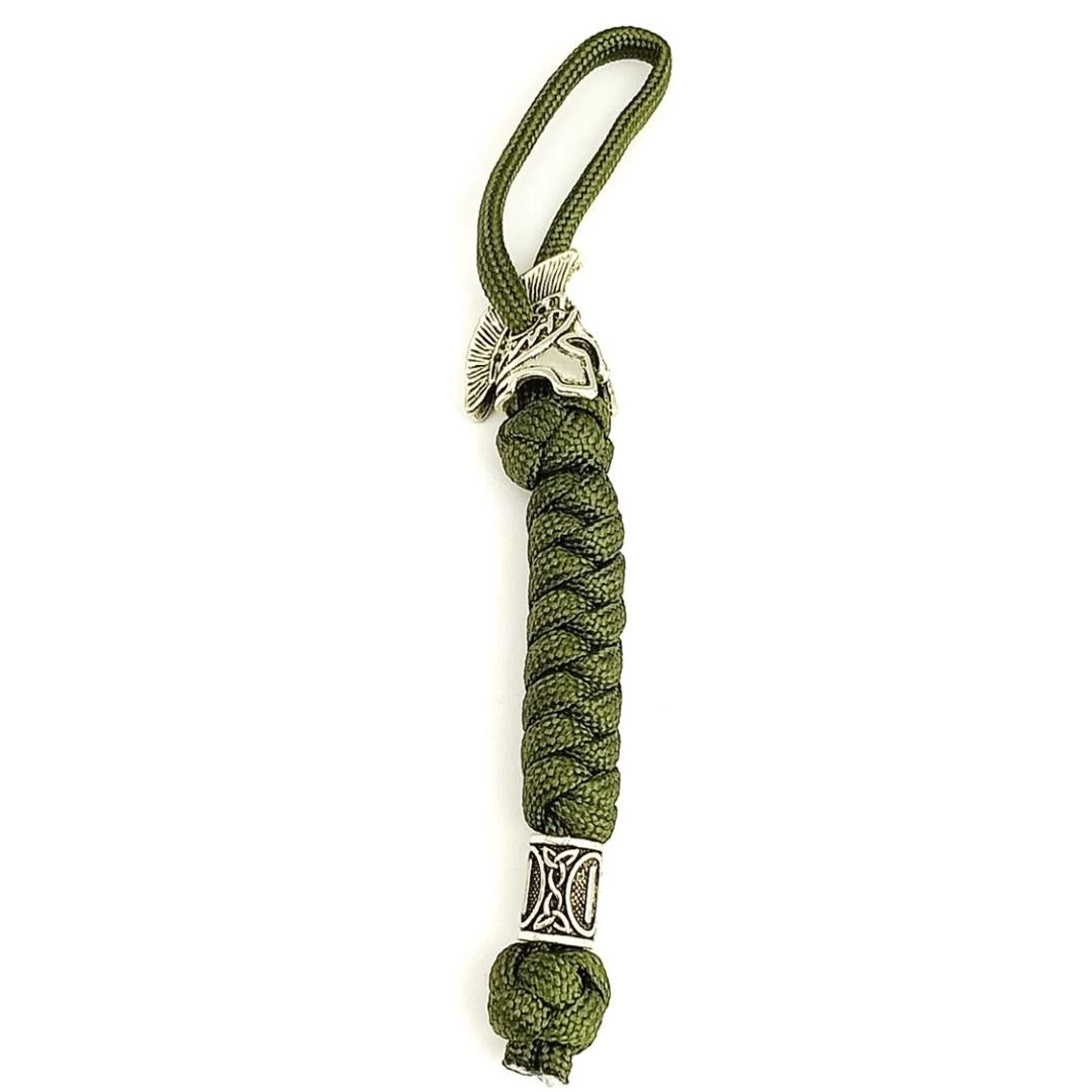 6.69” overall. Green braided paracord construction with spartan helmet bead. Bulk Packed.