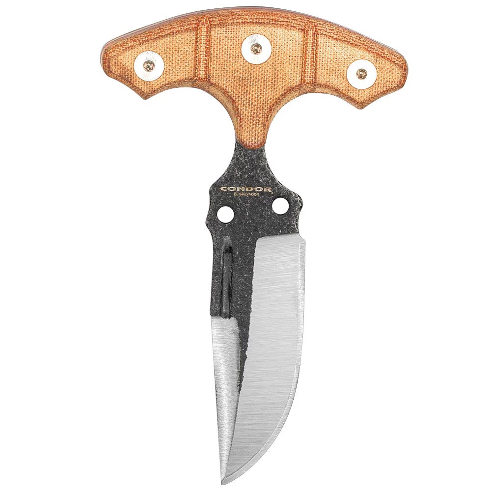 5.5″ (13.97cm) overall. 4″ (10.16cm) Condor classic finish 440C stainless blade. Brown micarta handle. Full tang. Brown leather belt sheath. Boxed.