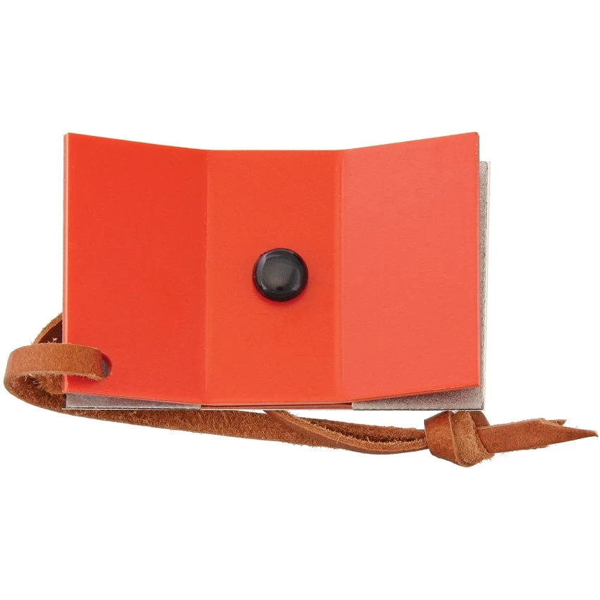 2 3/8″ overall. 30 and 60 micron (fine and coarse), unique double-sided version. Flexible for straight and profiled ice drills. Can also be used for knives and fishhooks. Stainless composite construction. Leather cord lanyard. Honing area is coated with millions of highest quality diamonds. Can be used for honing of knives, scissors, shearing knives, garden tools, chisels, axes, fishhooks, broad heads, carbide tools, stone, glass, and ceramic. Hang packaged.