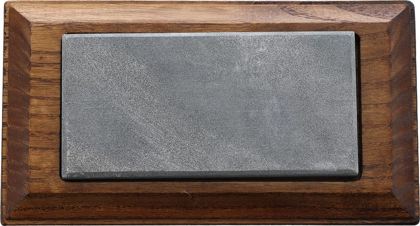 Dimensions: 5.63″ x 3″ x 0.88″. Stone dimensions: 4″ x 2″ x 0.25″. Coarse grain. Wood base. Boxed.