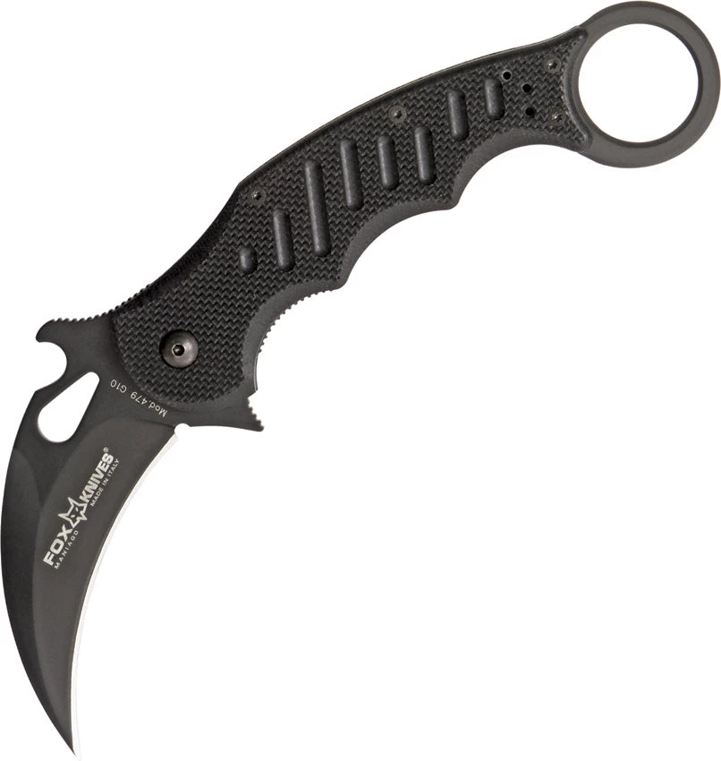 Fox Karambit Linerlock Black G10 Handle Finger Ring N690Co Folding Knife 479