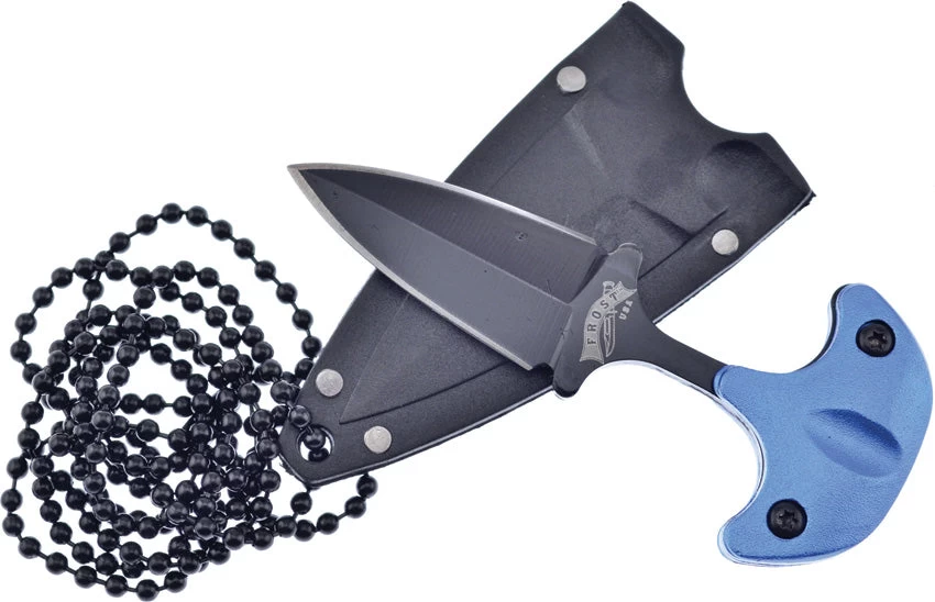 Frost Cutlery Blue Aluminum Double Edge Push Dagger W/ Neck Sheath C96BL