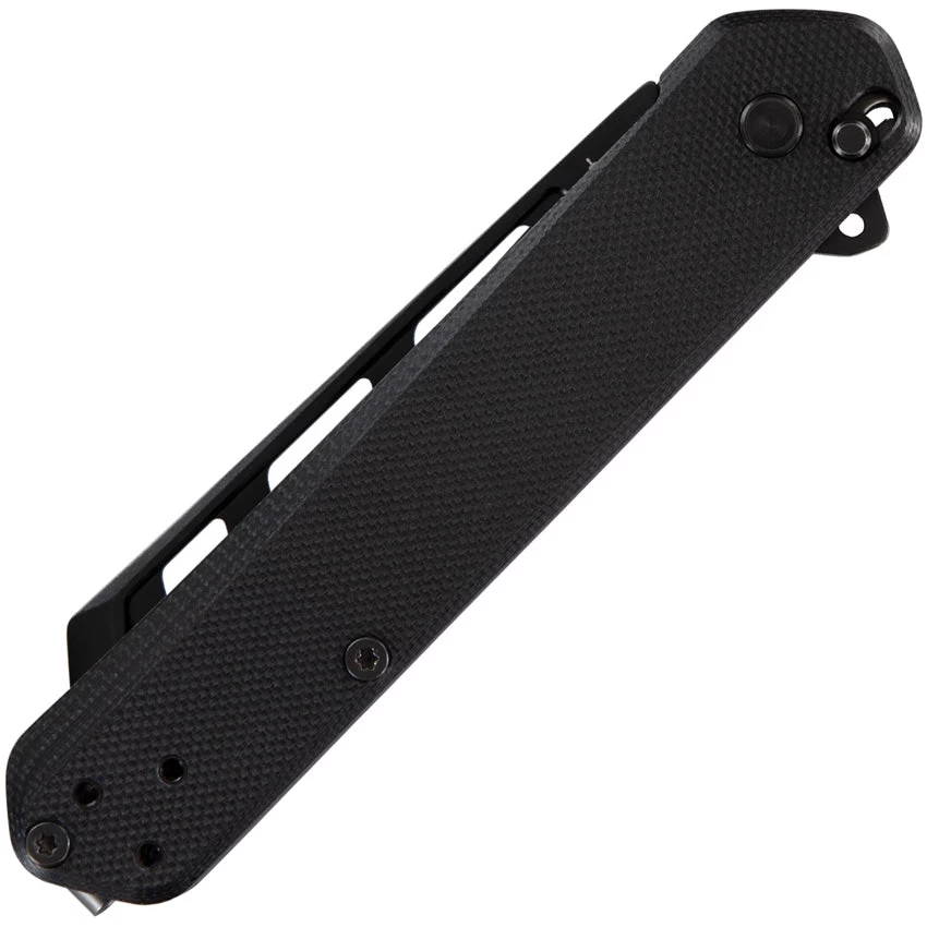 Assisted opening. 4.07” closed. 2.93” Black finish D2 steel reverse tanto blade. Black G10 handle. Linerlock. Flipper Tab. Stainless steel reversible tip-up pocket clip. Boxed.