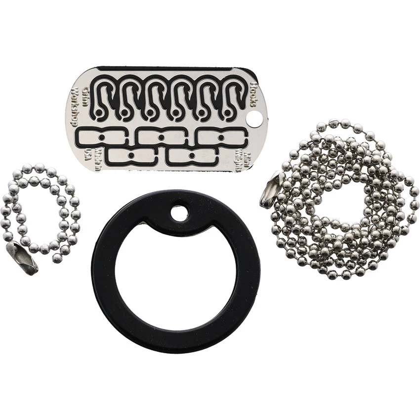 Dimensions: 1.88″ x 1″. Includes: (6) Mini fishing hooks; Fishing line wrap; (5) Weights/spinners. Ball chain lanyard. Tool retention system allows tools to be removed and put back. Non-magnetic and not sticky. Hardened stainless construction. Bulk packed.