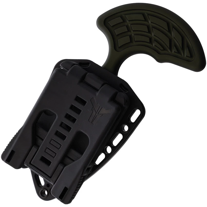 5.5″ (13.97cm) overall. 3″ (7.62cm) green serrated CPM-20CV stainless blade. Green aluminum handle. Detachable double edge blade. Sheath compatible with all Sleight models. Black Kydex belt sheath. Boxed.