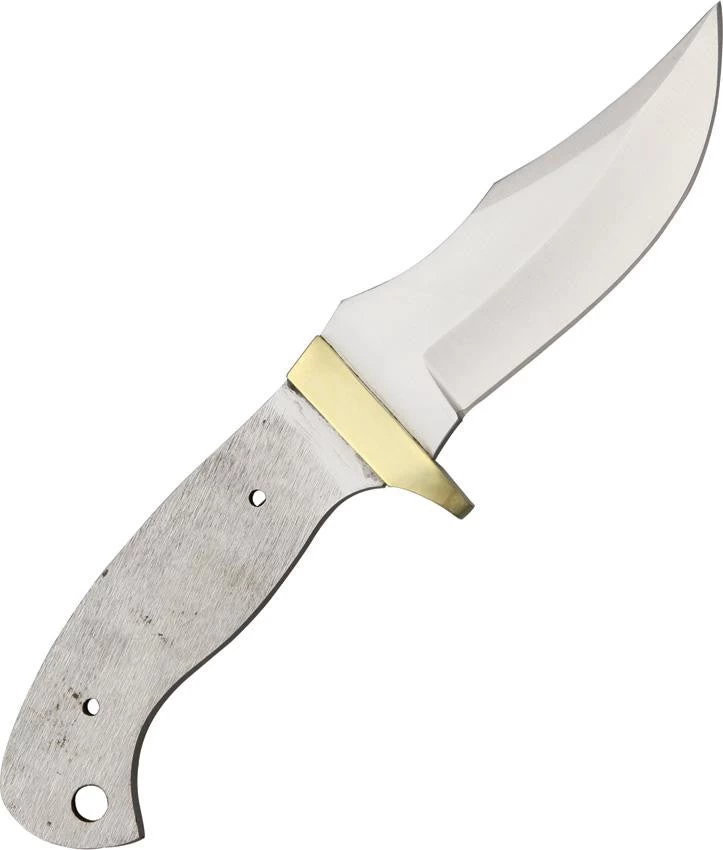 Lot of 3 Knife Blanks  – 6 7/8″ overall. 3 1/4″ stainless modified clip point blade. Full tang. Brass finger guard. Lanyard hole. Bulk packed