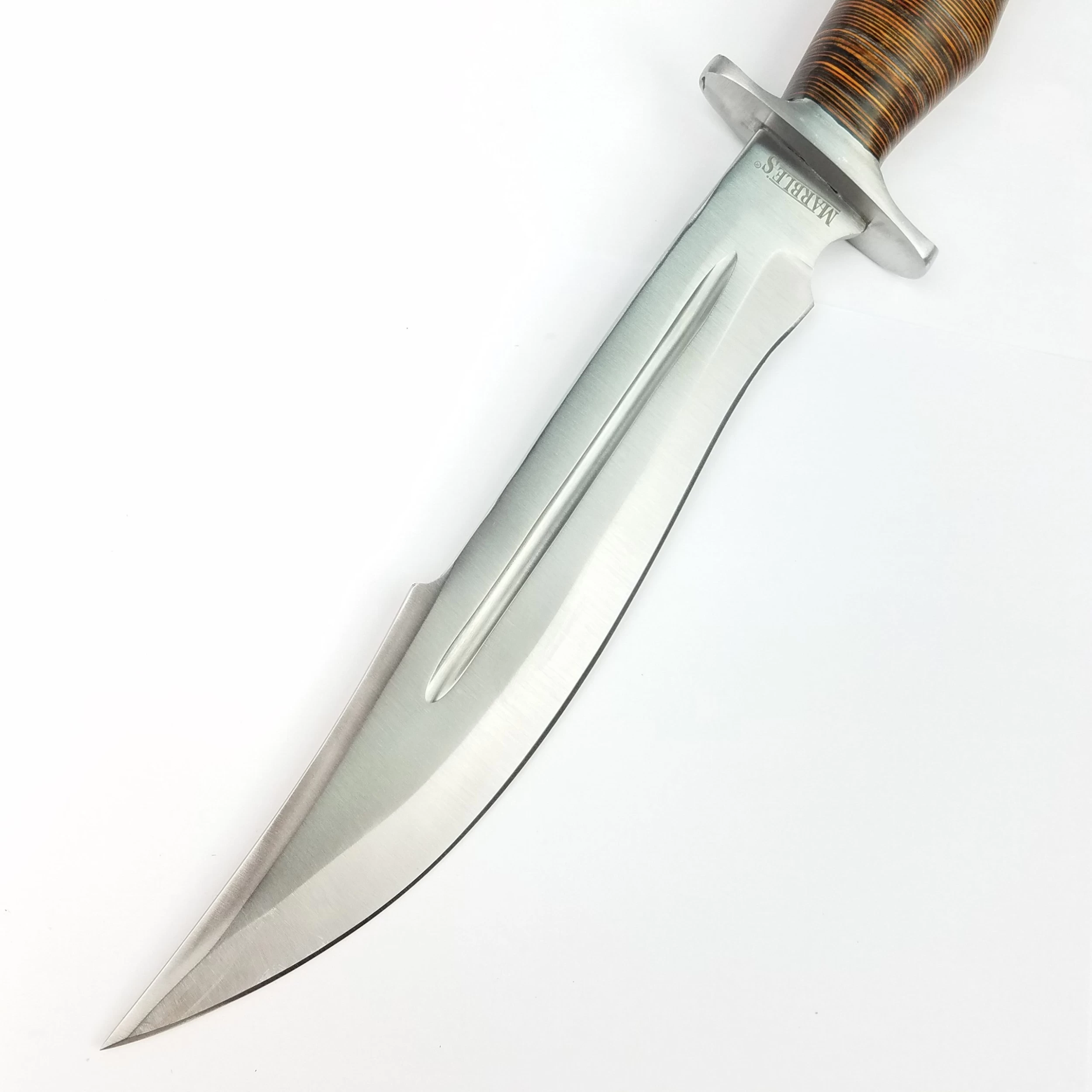 Marbles Stacked Leather Bowie 15″ Fixed Blade Knife + Sheath 621