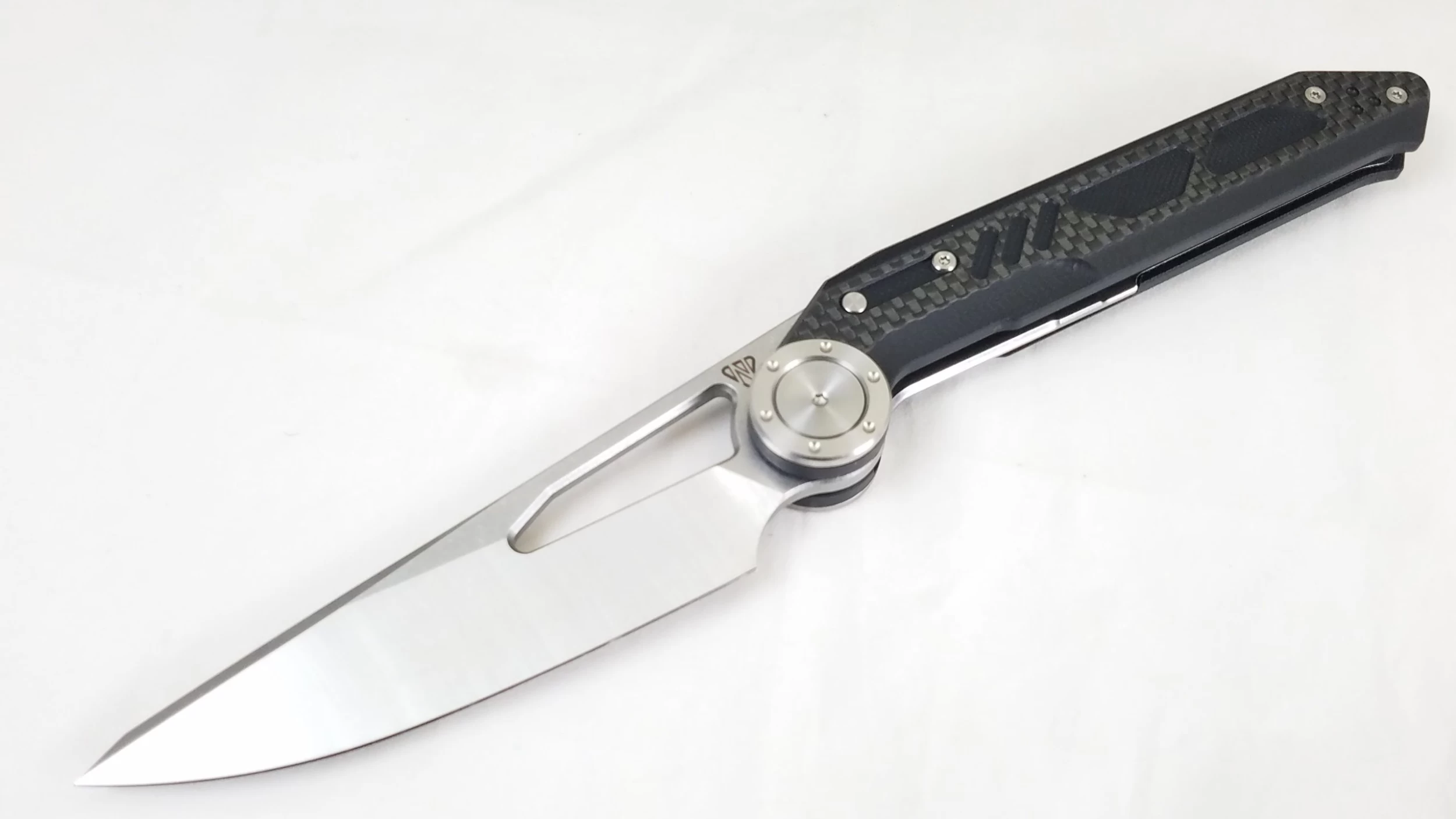 5.5″ closed. 4″ 440C stainless blade. Black G10 handle. Thumb pull. Pocket clip. Extended tang. Satin and stonewash finish blade. Black G10 and carbon fiber handle. Boxed.