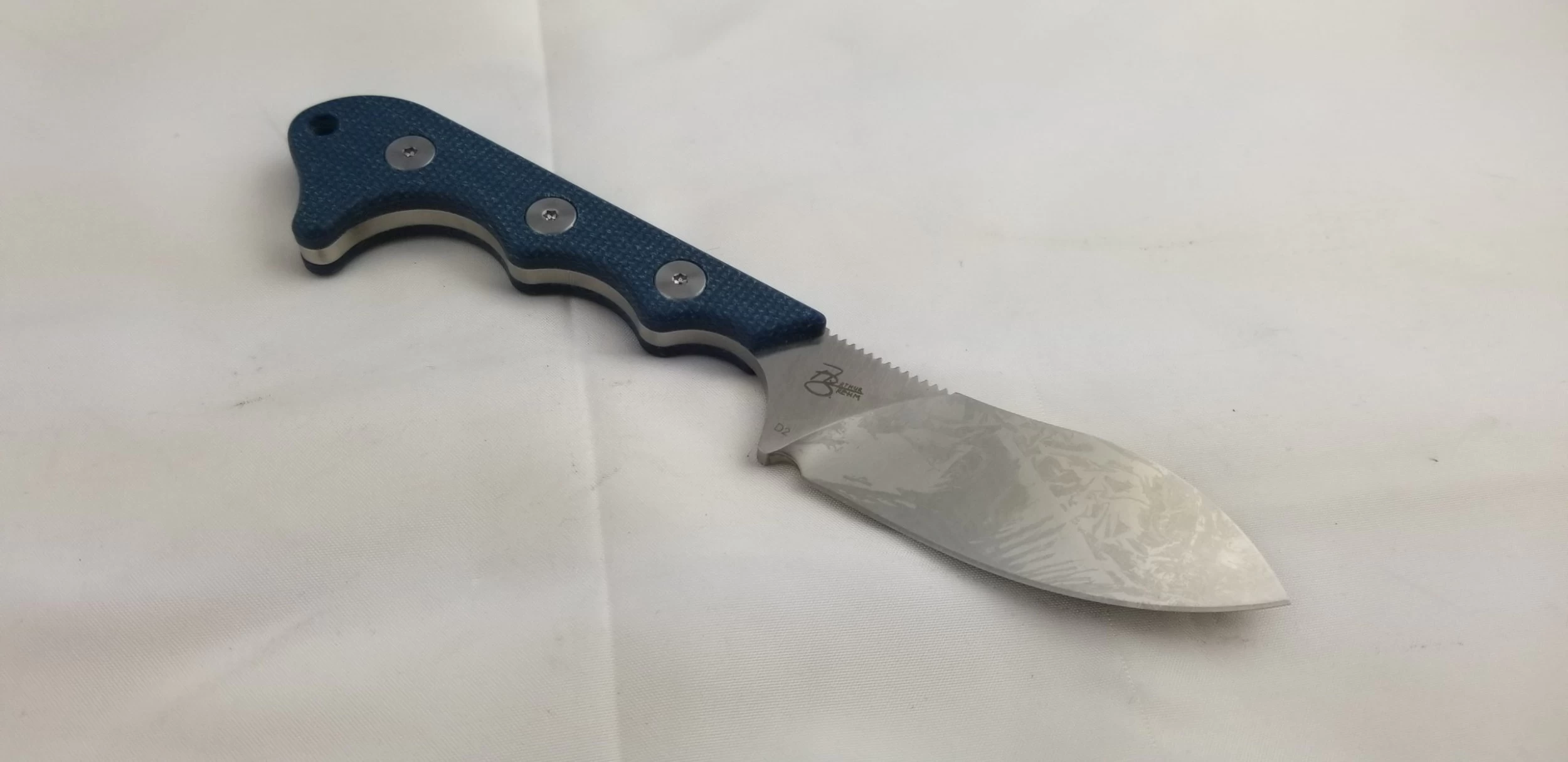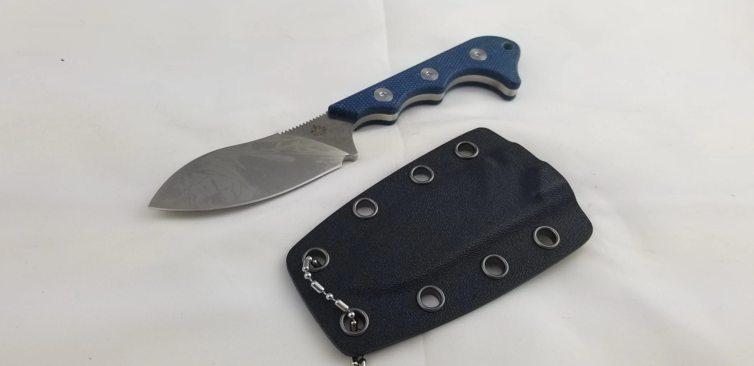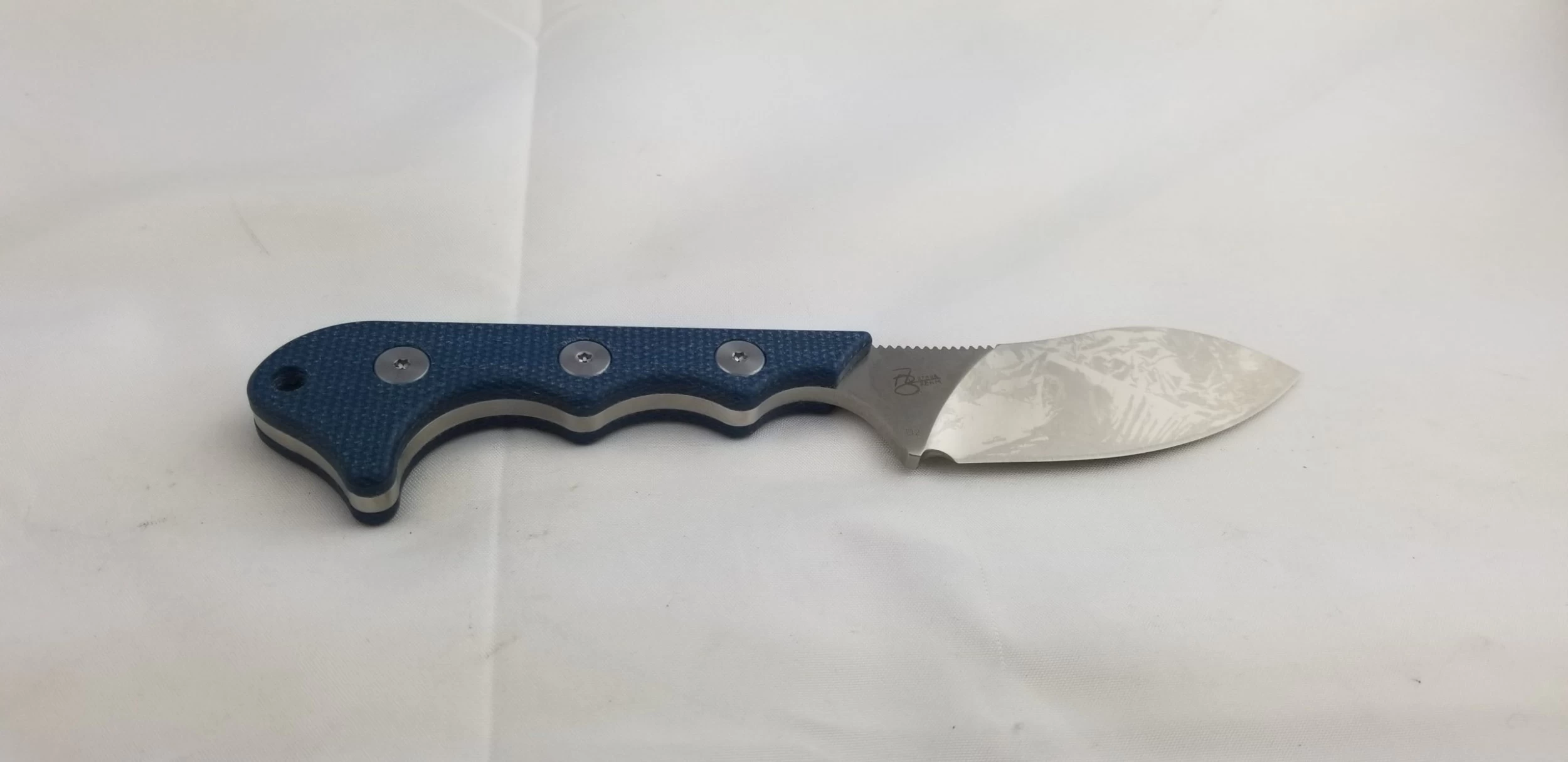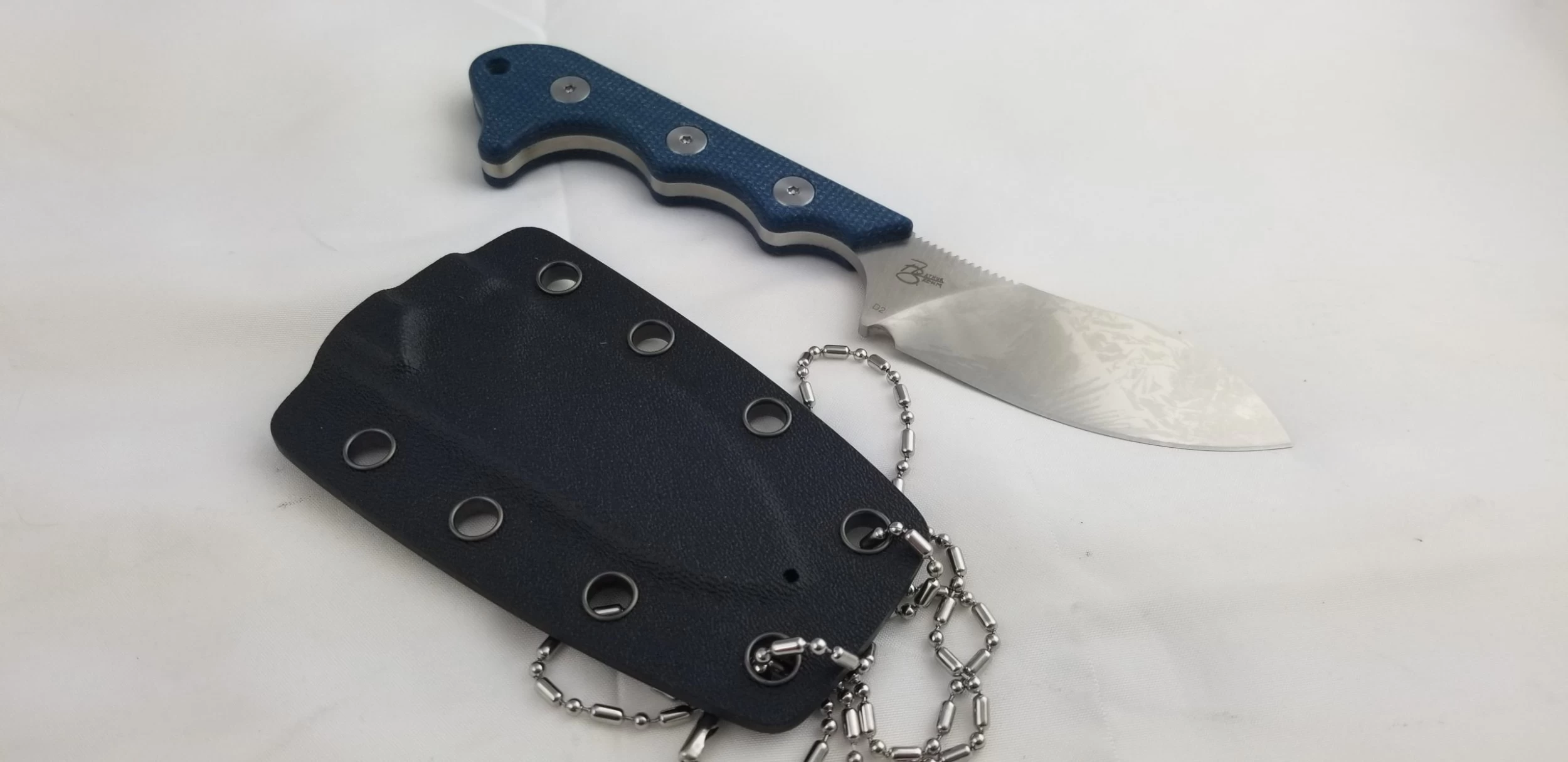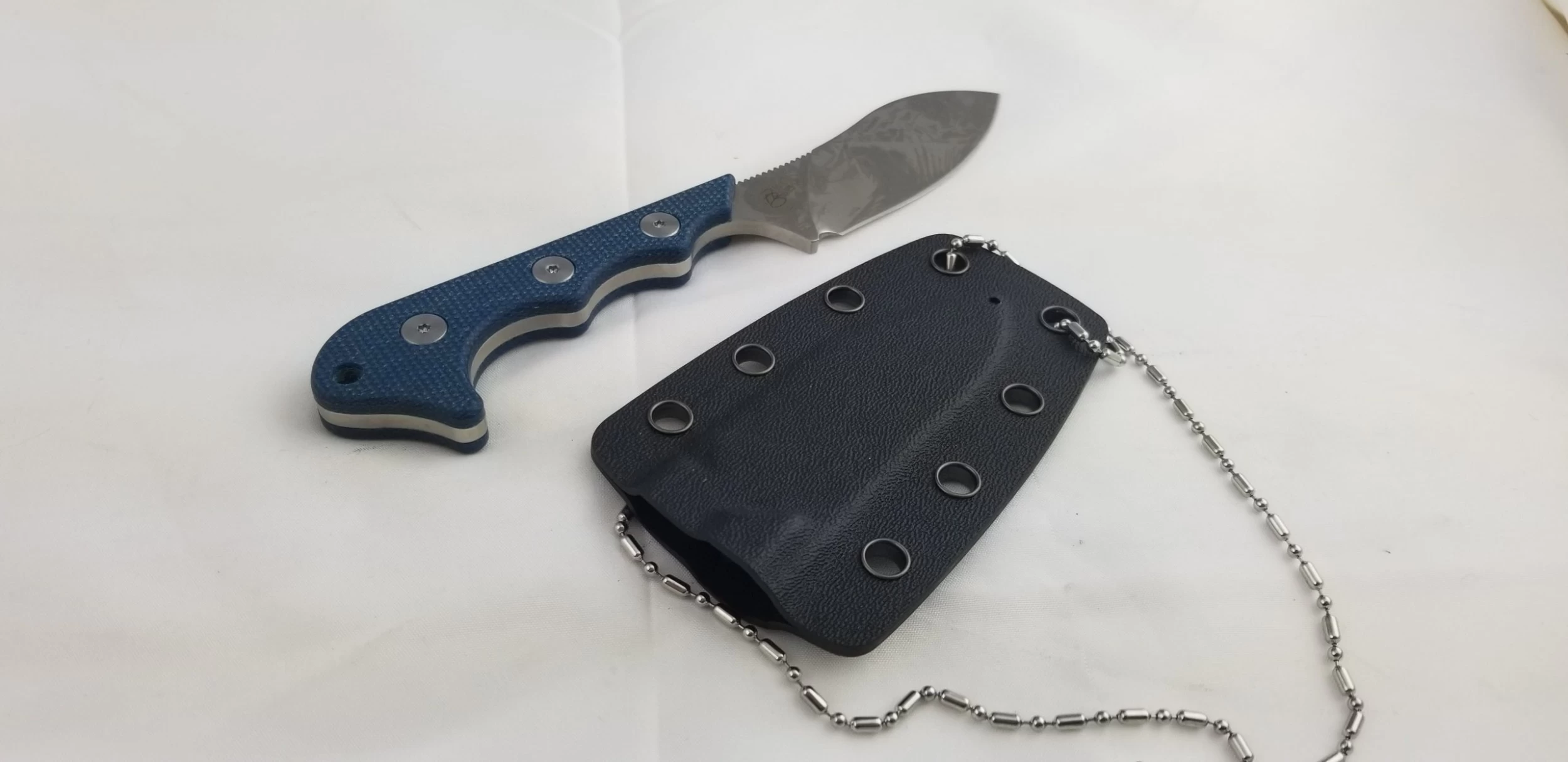 QSP Knives Neckmuk Blue Micarta D2 Steel Fixed Blade Neck Knife W/ Sheath 125D