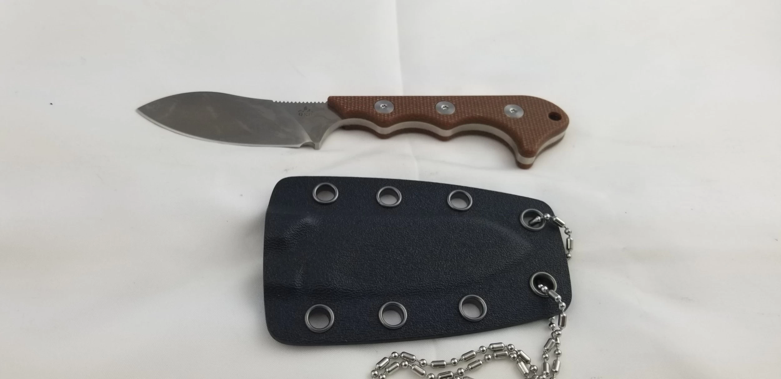 QSP Knives Neckmuk Brown Micarta D2 Steel Fixed Blade Neck Knife W/ Sheath 125E