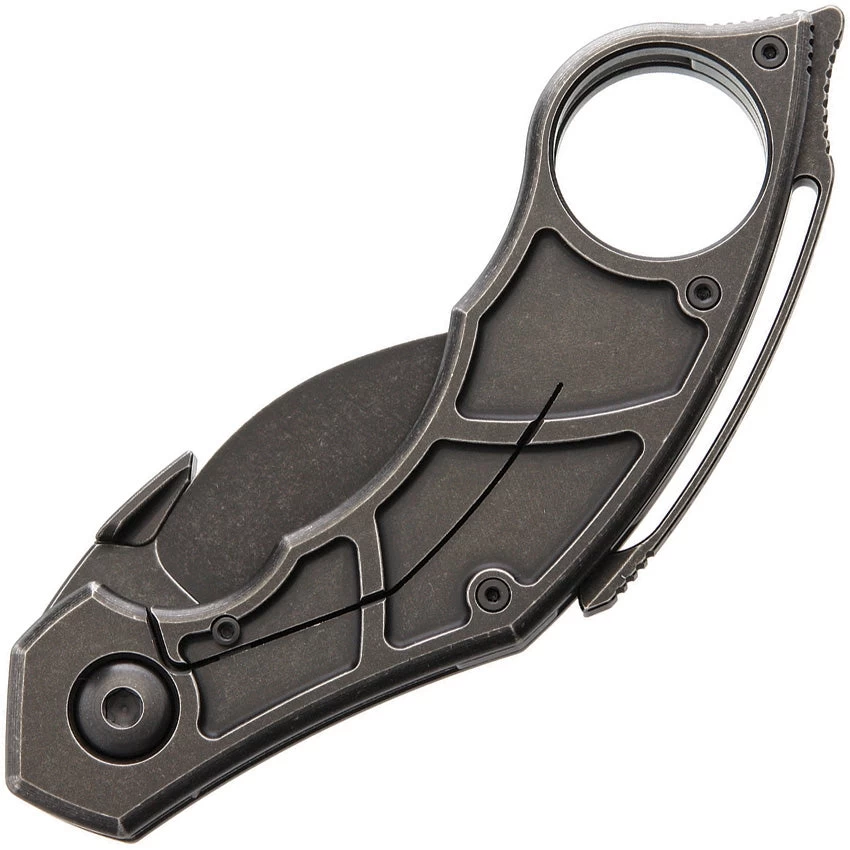 2 1/4″ blackwash texas tea S35VN stainless hawkbill blade. 5 1/4″ closed. Titanium handle. Framelock. Pocket clip. USA Made.