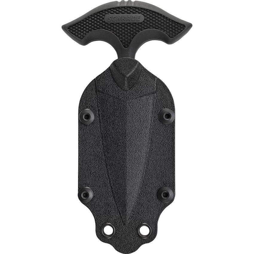 5.5″ overall. 3.25″ bead blast finish unsharpened stainless dagger blade. Black checkered rubber handle. Full tang. Black Kydex belt sheath. Boxed.