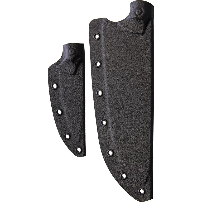 Tumbled finish S35VN stainless blade. Black and blue G10 handle. Full tang. Includes 12.25″ Chef’s with 7.5″ blade and 8″ paring with 3.25″ blade. Black Kydex belt sheath. Bulk packed.