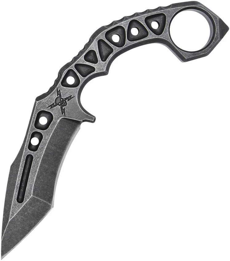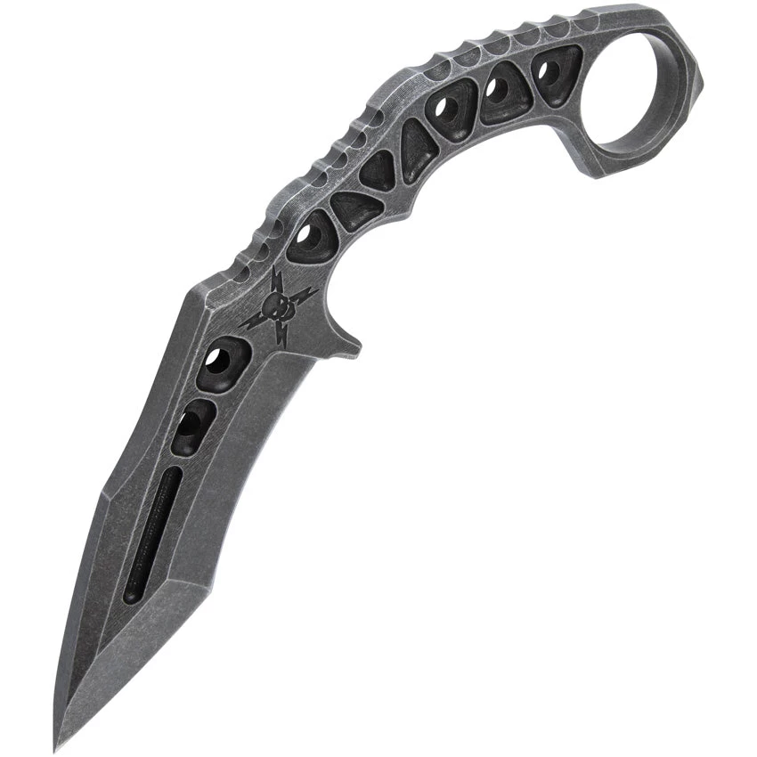 9.5″ (24.13cm) overall. 4.5″ (11.43cm) black stonewash finish 3Cr13 stainless blade. Black stonewash finish stainless handle. Glass breaker. Finger ring. Black Kydex belt sheath. Boxed.