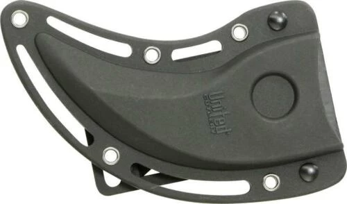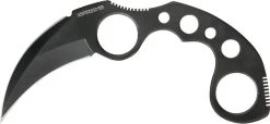 United Cutlery Undercover Karambit Black – 6 1/2″ overall. 2 3/4″ blade. One piece stainless construction with machined hole cutouts and finger holes. Molded black belt sheath. Â Comes boxed.