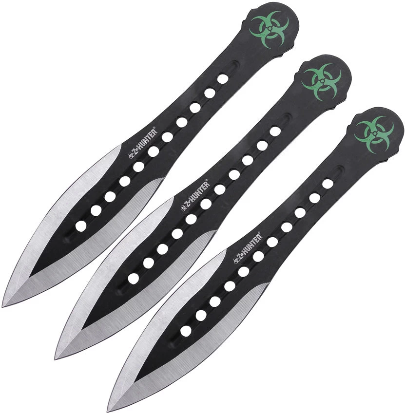 Z-Hunter Black Stainless Double Edge 3pc Throwing Knives W/ Belt Sheath 633BK